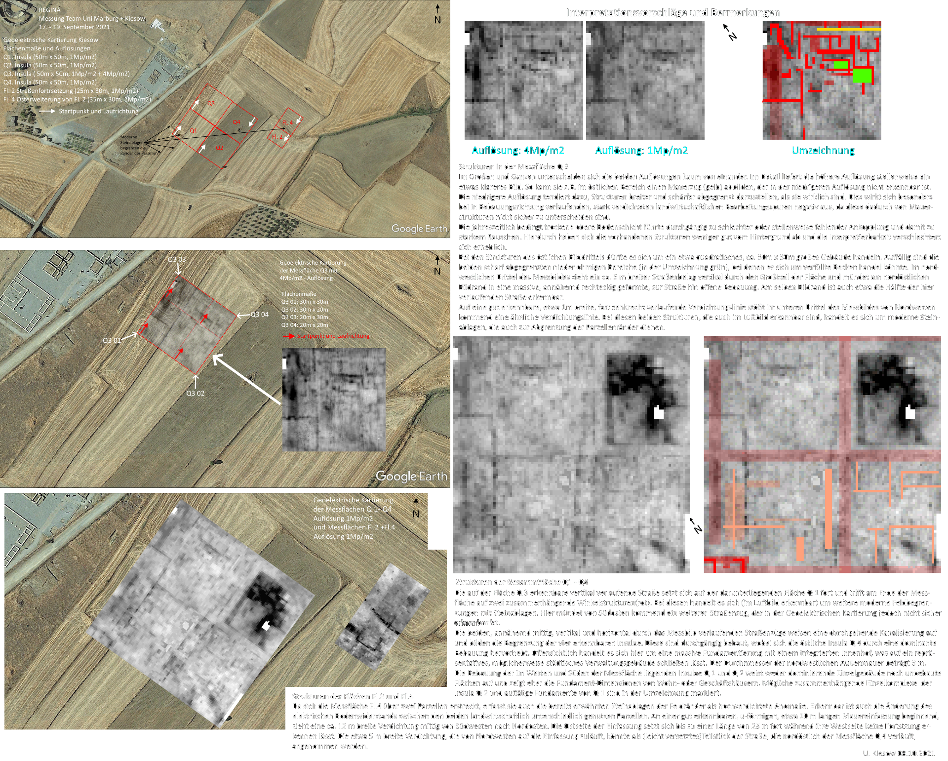 Alle Flächen wurden mit 1 MP/m2 gemessen. Die Insula im Quadrant Q3 wurde zu Testzwecken zusätzlich mit 4 MP/m2 erfasst.