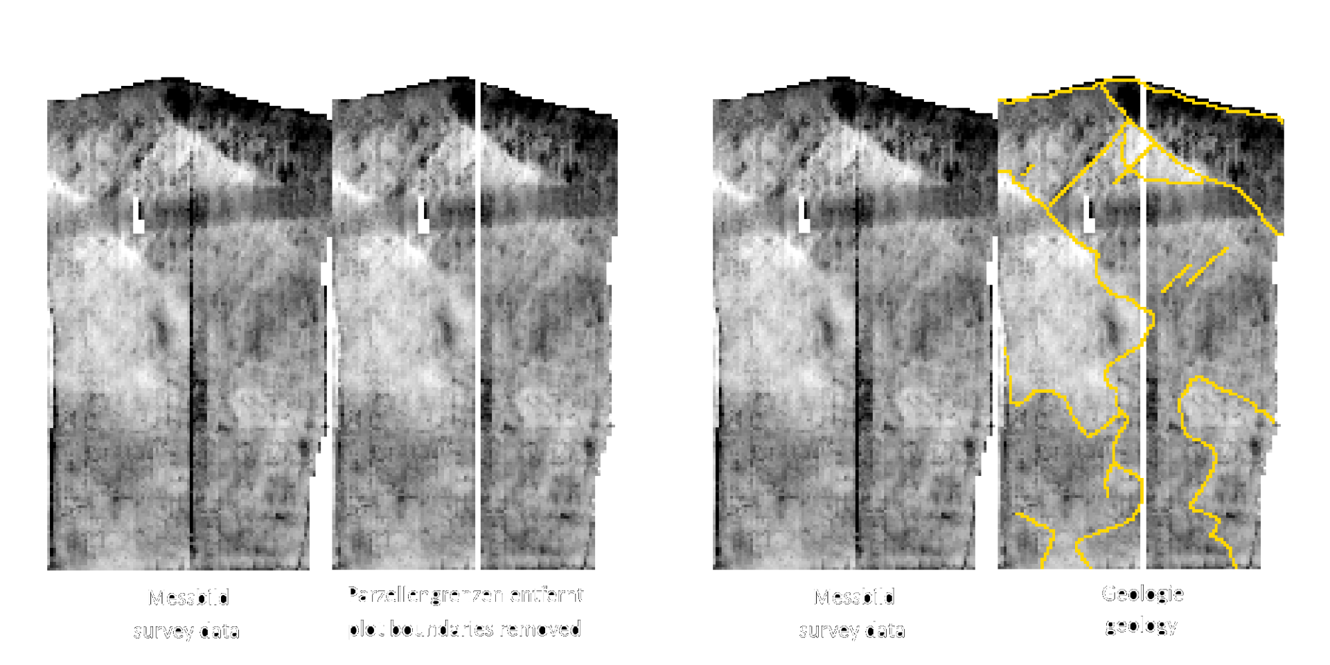 Various geological faults run through the entire measurement area. They are unusually right-angled and linear in the south-eastern third of the two plots